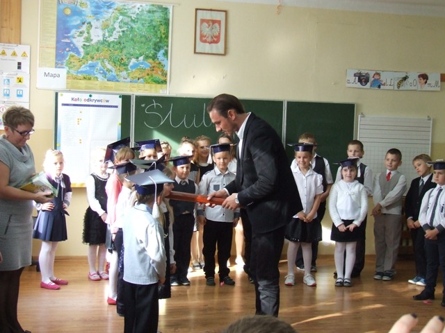 Pasowanie na ucznia „wielkim ołówkiem" - było tylko tego potwierdzeniem. Aktu tego dokonał pan dyrektor Dariusz Woźniak. Uczniowie klasy I zostali przyjęci do braci uczniowskiej. Ukoronowaniem aktu pasowania było wręczenie pamiątkowych dyplomów. Uśmiechnięci Pierwszoklasiści przyjęli życzenia od pani wicedyrektor Elżbiety Nowakowskiej oraz od starszych kolegów.